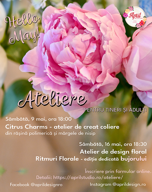 Ateliere de mai: coliere citrus & design floral cu bujori
